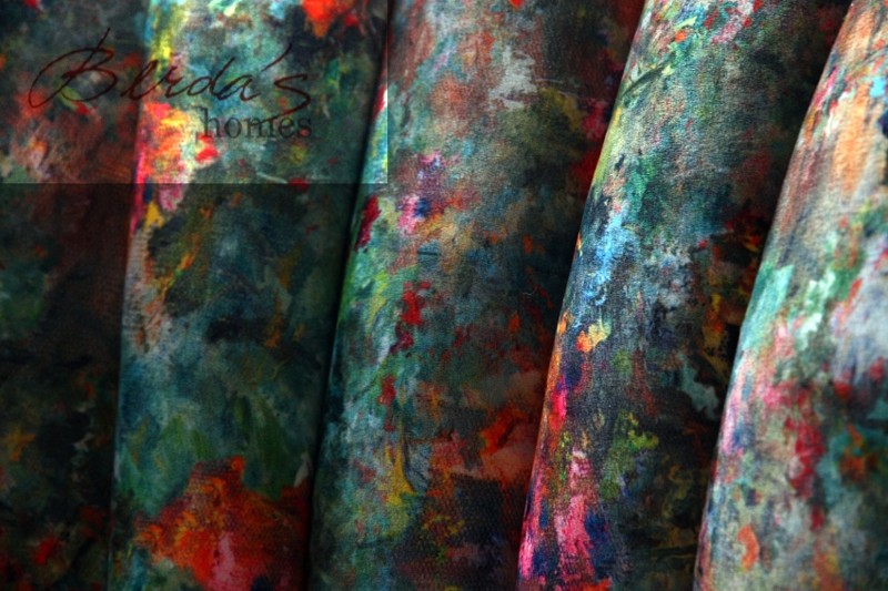Křeslo Halabala H237 po celkové opravě (zpevnění a kostry, nově vyvázané pružiny, sedák z čerstvého afriku, nově tvarovaný opěrák) potažené kvalitní a pevnou plyšovou látkou s motivem z Renoirových obrazů.
