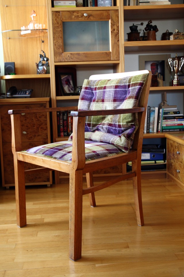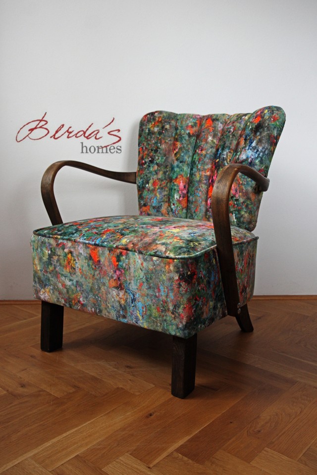 Krásné a pohodlné křeslo v sobě spojuje vlastně vše, co mě baví – je na něj radost pohledět a ještě je příjemné na sezení! (Pokud teda budete mít odvahu z něj vyhodit svou kočku, která to pochopí sotva nahlédne do místnosti a učiní je svým). Pohodlná křesla ze starších dob jsou většinou pružinová, se sedákem tvarovaným z přírodních materiálů. S pružinami i afrikem je spoustu práce a nepatří mezi nízkorozpočtové techniky, ale pokud pro sebe chcete křeslo, které Vám při slušném zacházení vydrží až do důchodu, je to dobrá volba! Stará i mírně poškozená křesla podle jejich stavu odstrojím, zajistím nezbytnou opravu a povrchovou úpravu kostry a pak znovu vyvážu, vytvaruji sedák a potáhnu Vámi zvolenou vhodnou látkou. Každý kus staršího nábytku vyžaduje individuální přístup, proto pokud máte nějaké křeslo, které byste nám chtěli svěřit, kontaktujte mne a na všem potřebném se domluvíme. Pokud své křeslo nemáte a nějaké chcete, podívejte se do mé nabídky k prodeji v rubrice Bazaar nebo mne oslovte a já Vám pomohu vaše křeslo k opravě a čalounění najít a vybrat. Pro rozsáhlejší fotodokumentaci zavítejte na náš Facebook, odkaz níže na liště!
